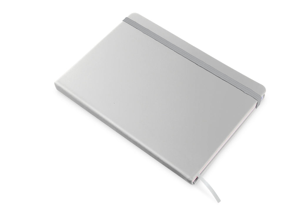 Libreta con cubierta forrada en imitación cuero. Con banda elástica de cierre. Cinta marcadora. 80 hojas rayadas. Tamaño aproximado de la hoja: A5. La libreta de color Natural viene con cubierta en cartón reciclado.