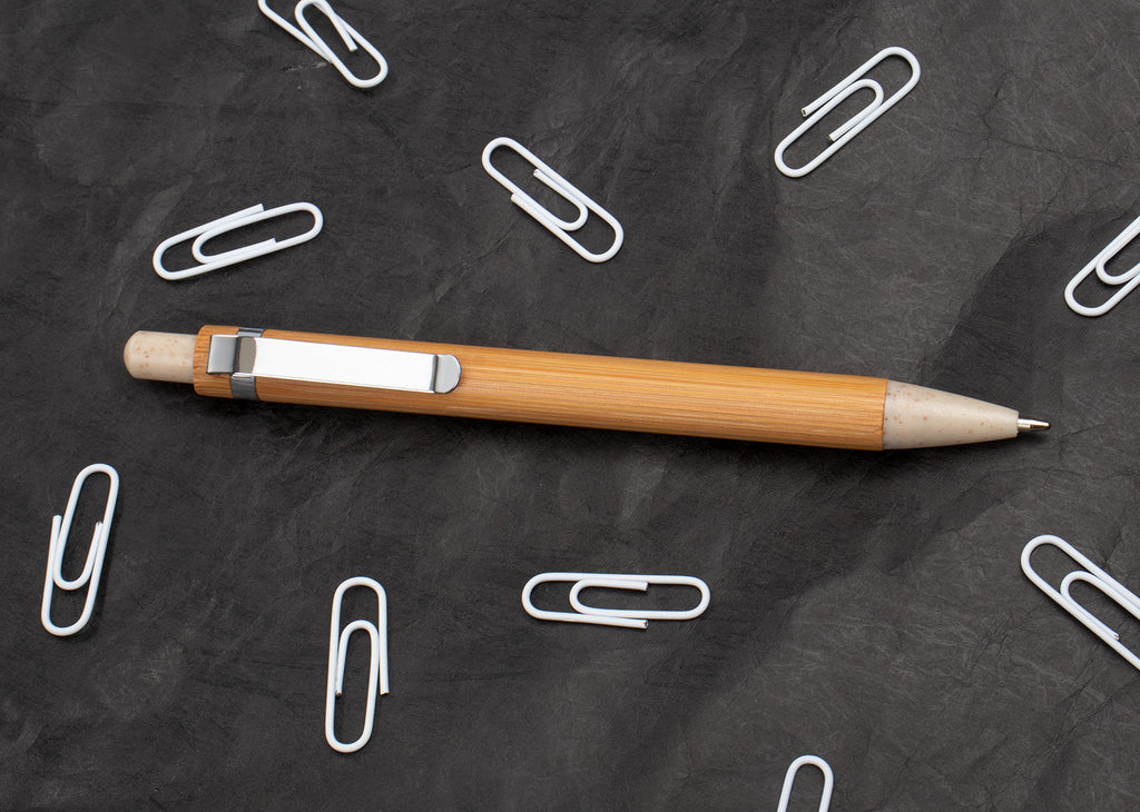 Bolígrafo ecológico con sistema retráctil y clip metálico