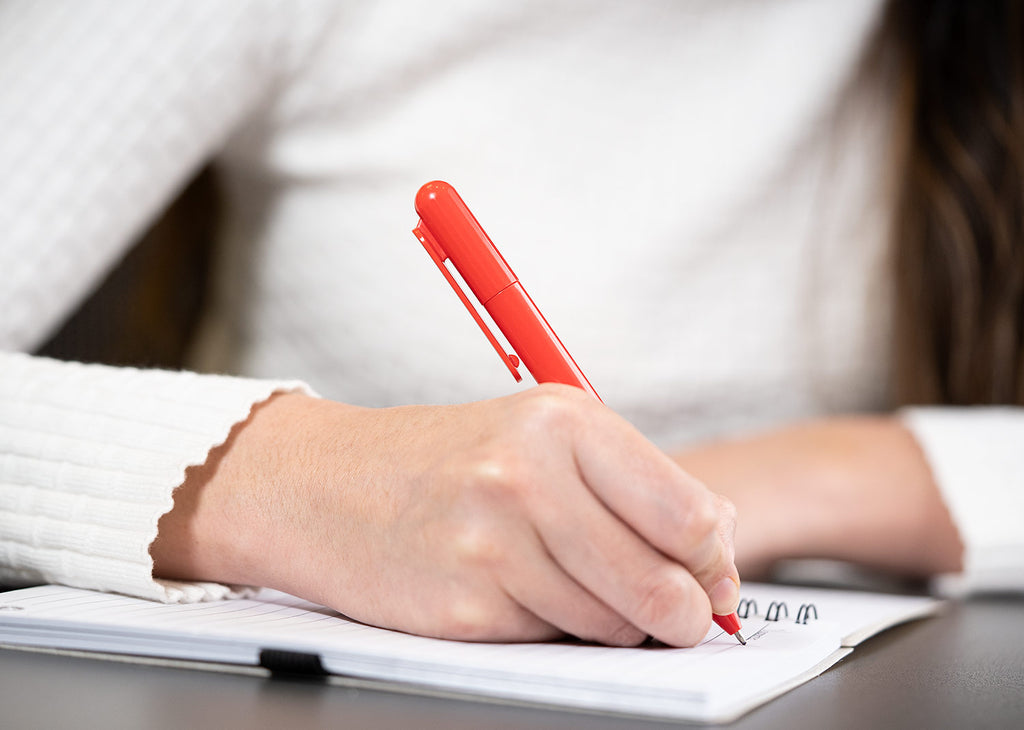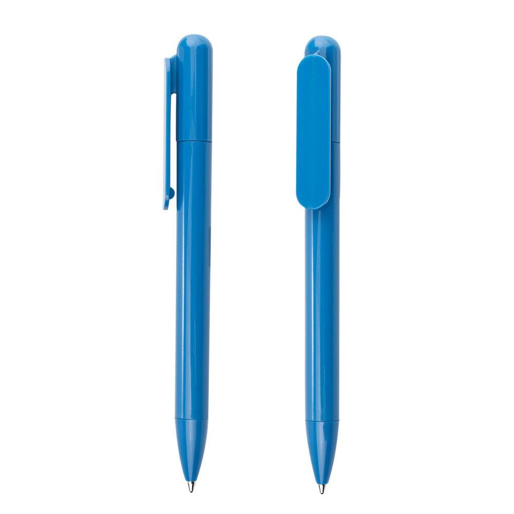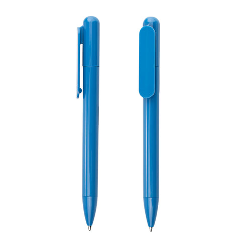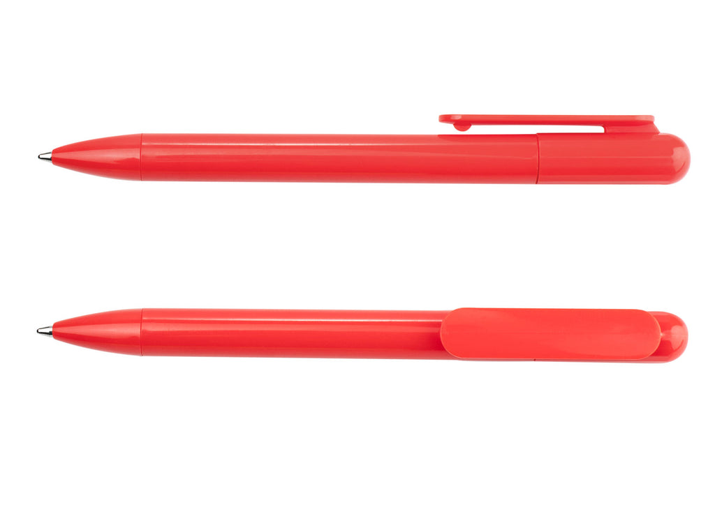 Bolígrafo de plástico, cuerpo superior e inferior de color sólido, Sistema de apertura de giro.