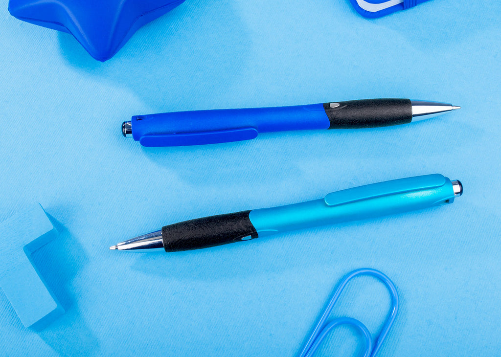 Bolígrafo plástico con sistema retráctil con grip en caucho
