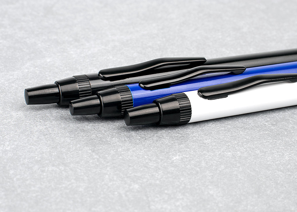 Bolígrafo en aluminio con sistema de apertura retráctil.