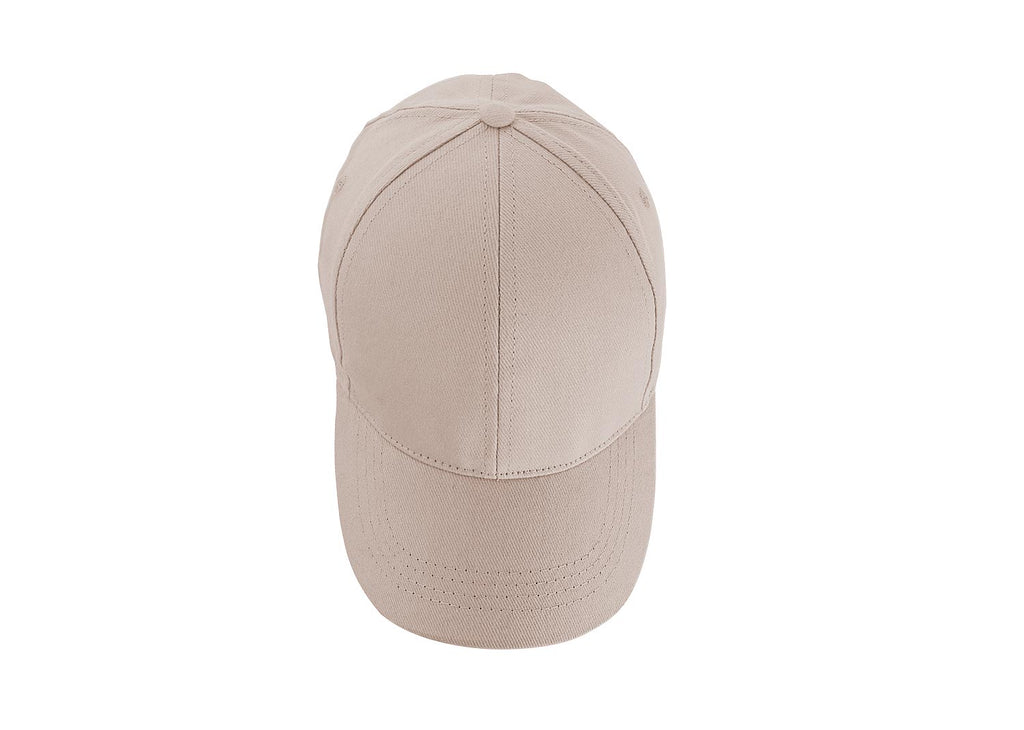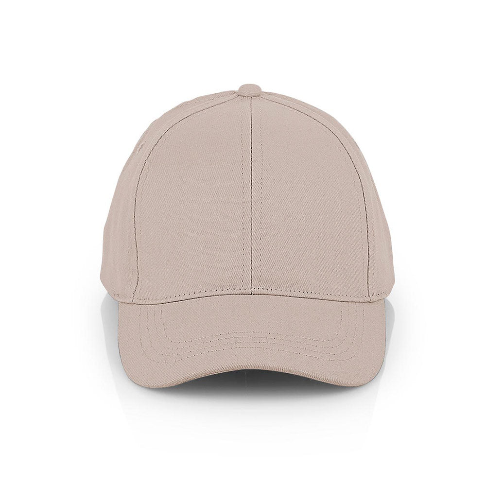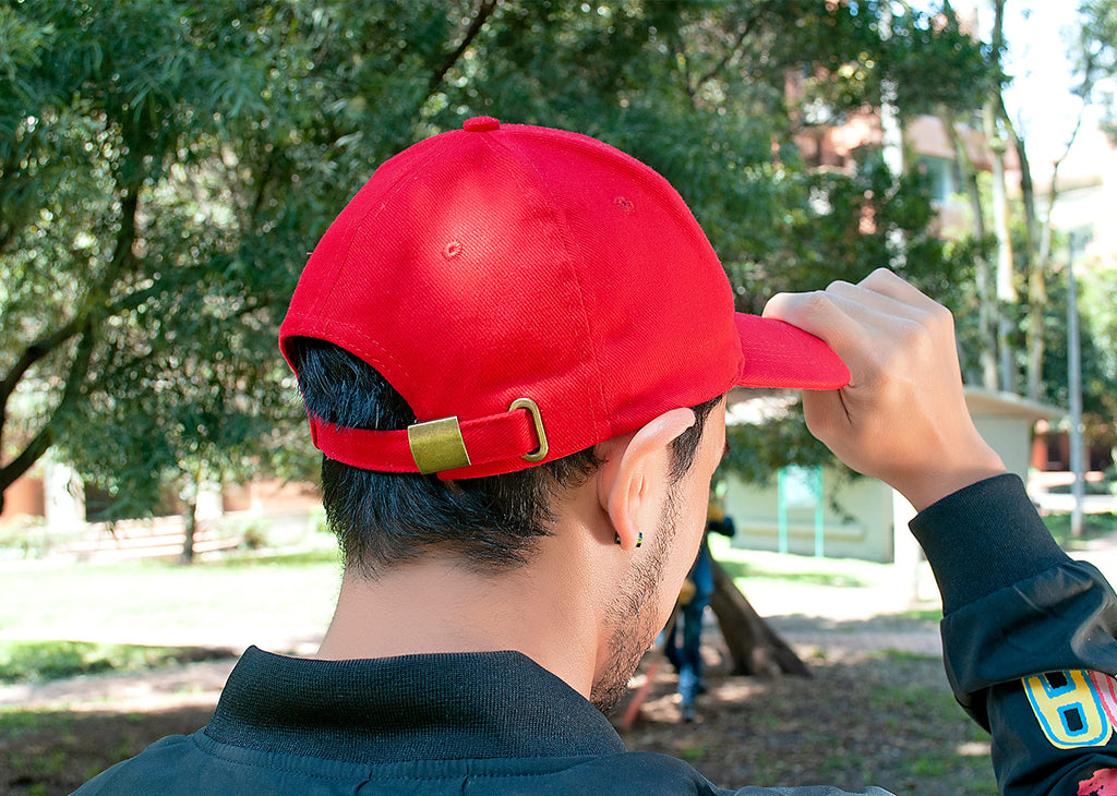 Gorra de 6 paneles con visera indeformable 4 costuras, botón forrado, 4 ojetes bordados, tafilete textil y cierre hebilla metálica.
