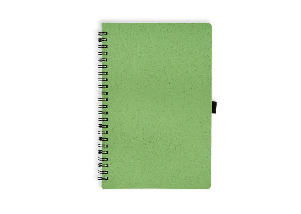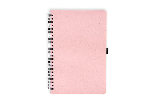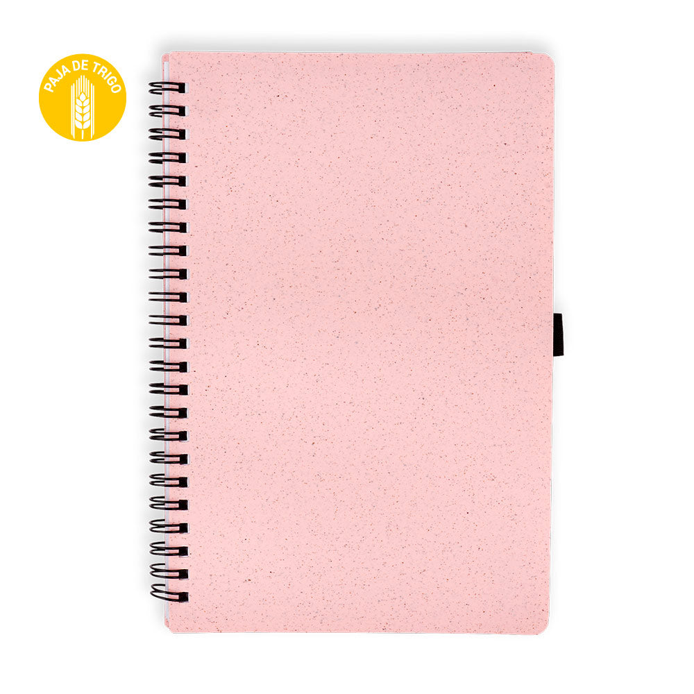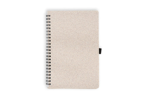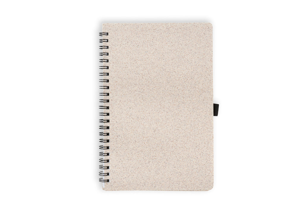Libreta argollada 'doble O' con cubierta en paja de trigo. Contiene 70 hojas rayadas de papel reciclado. Tamaño aproximado de la hoja: A5.